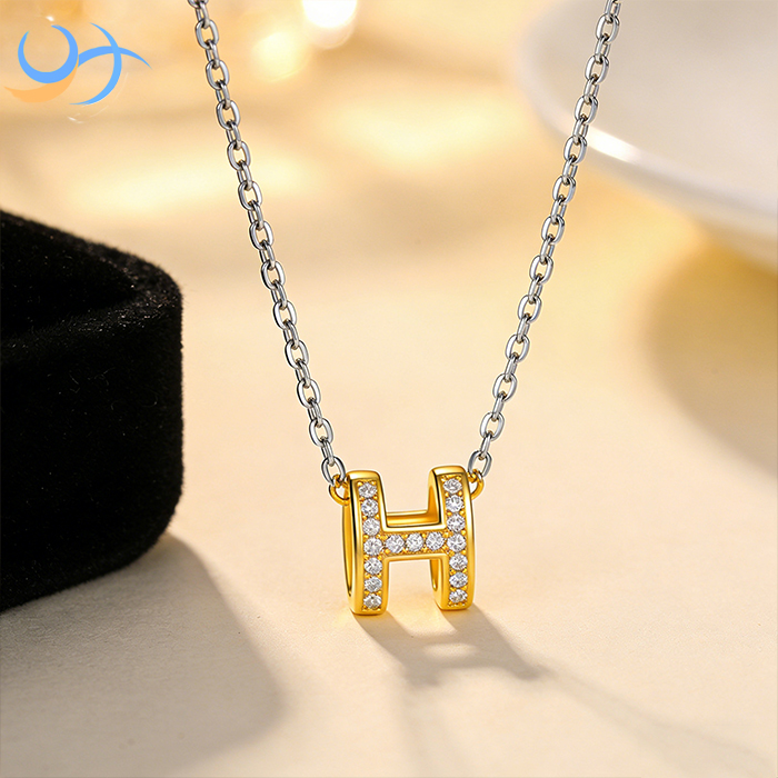 After electroplating, the H pendant is assembled with the polished gold-plated cable chain, with the connecting rings securely welded closed to prevent breakage. Every finished necklace then undergoes a comprehensive final quality inspection: visual inspection under professional lighting to check for plating defects, scratches, or misaligned stones; a tension test to verify the strength of the chain and connecting points; and a salt spray test to validate corrosion resistance. Only pieces that pass all inspections are approved for release.